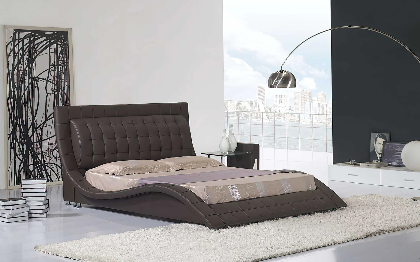 تخت مدرن ادین با طراحی منحنی و بدنه چرمی